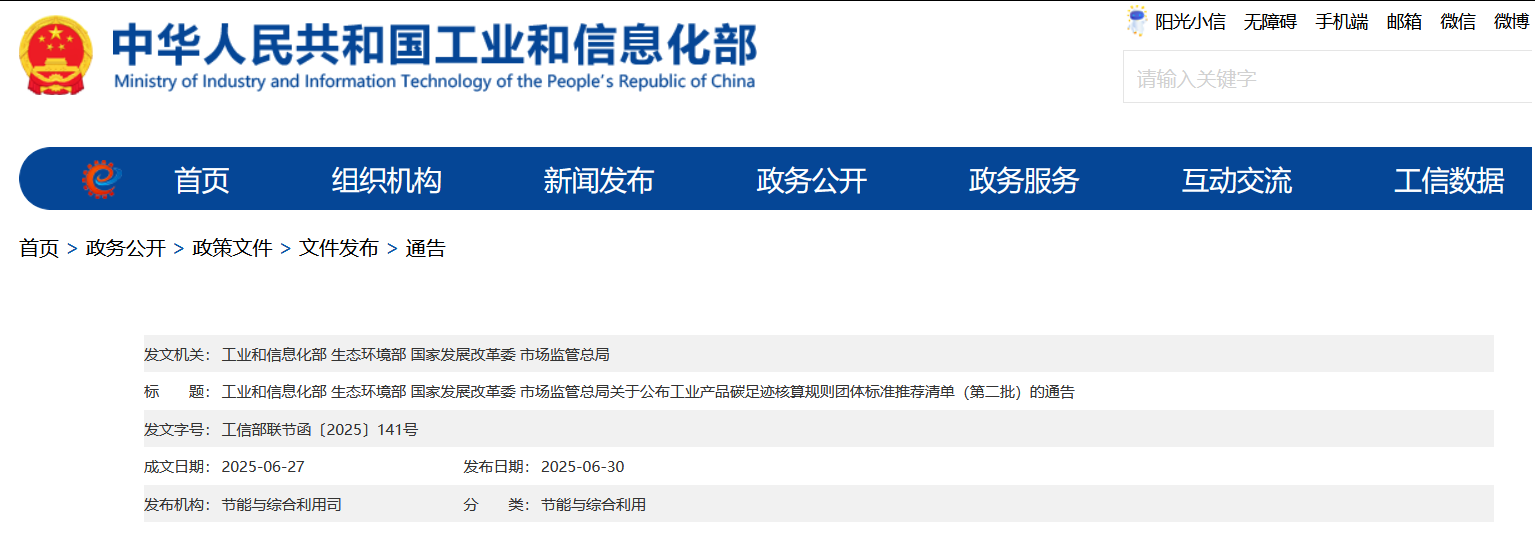 工業(yè)和信息化部等四部門關于公布工業(yè)產品碳足跡核算規(guī)則團體標準推薦清單(第二批)的通告 詳細>>